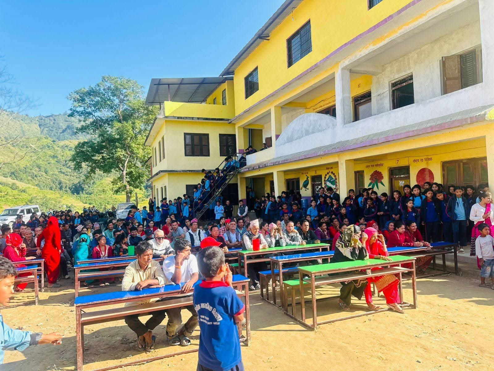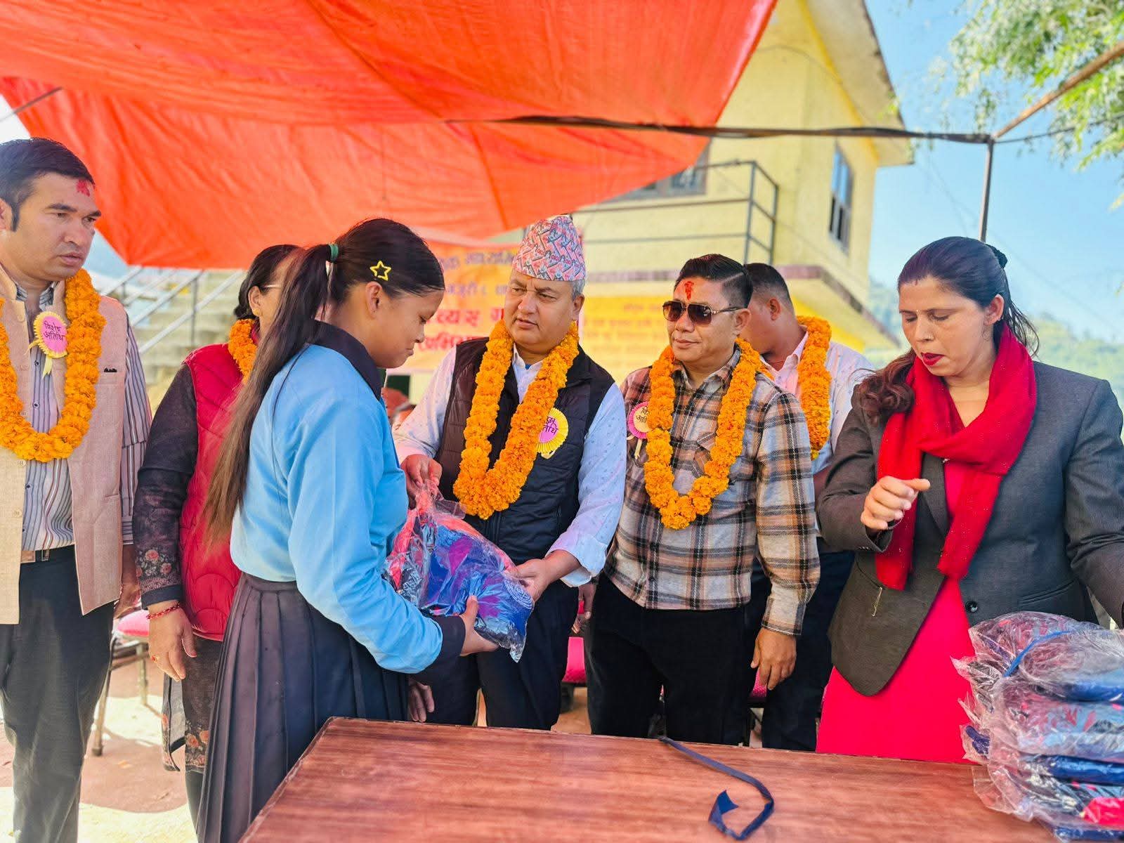 यसै बिधालयका शिक्षक रामेश्वर पौडेलको पहलमा स्विजरल्याण्डका नागरिक नोआ कुन्जको सहयोगमा विद्यालयका विद्यार्थीहरुलाई ट्र्याकसुट र झोला वितरण गरिएको हो। सहयोगी कुन्जलाई विद्यालय परिवारले विशेष धन्यवाद ज्ञापन गरेको थियो।