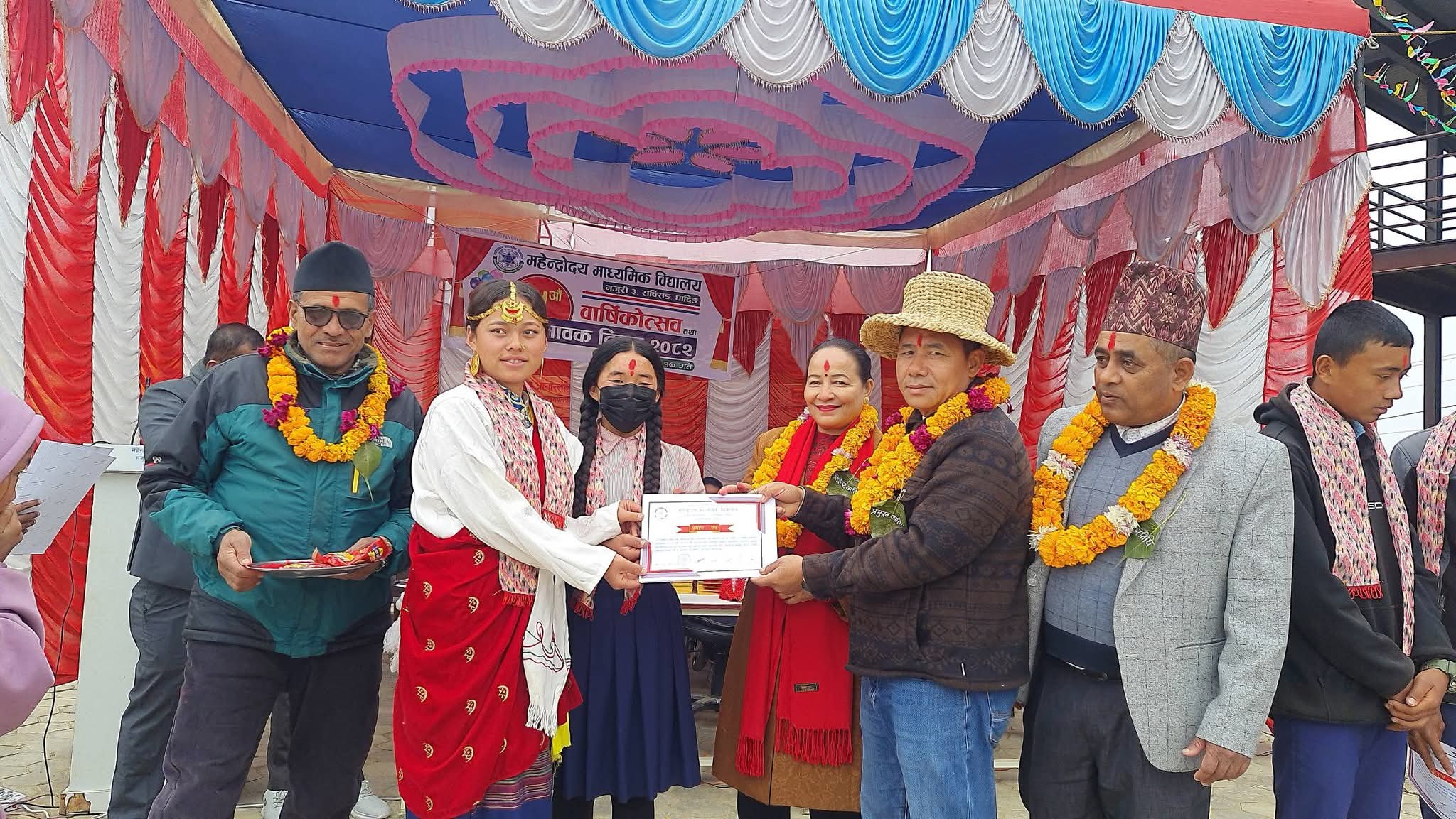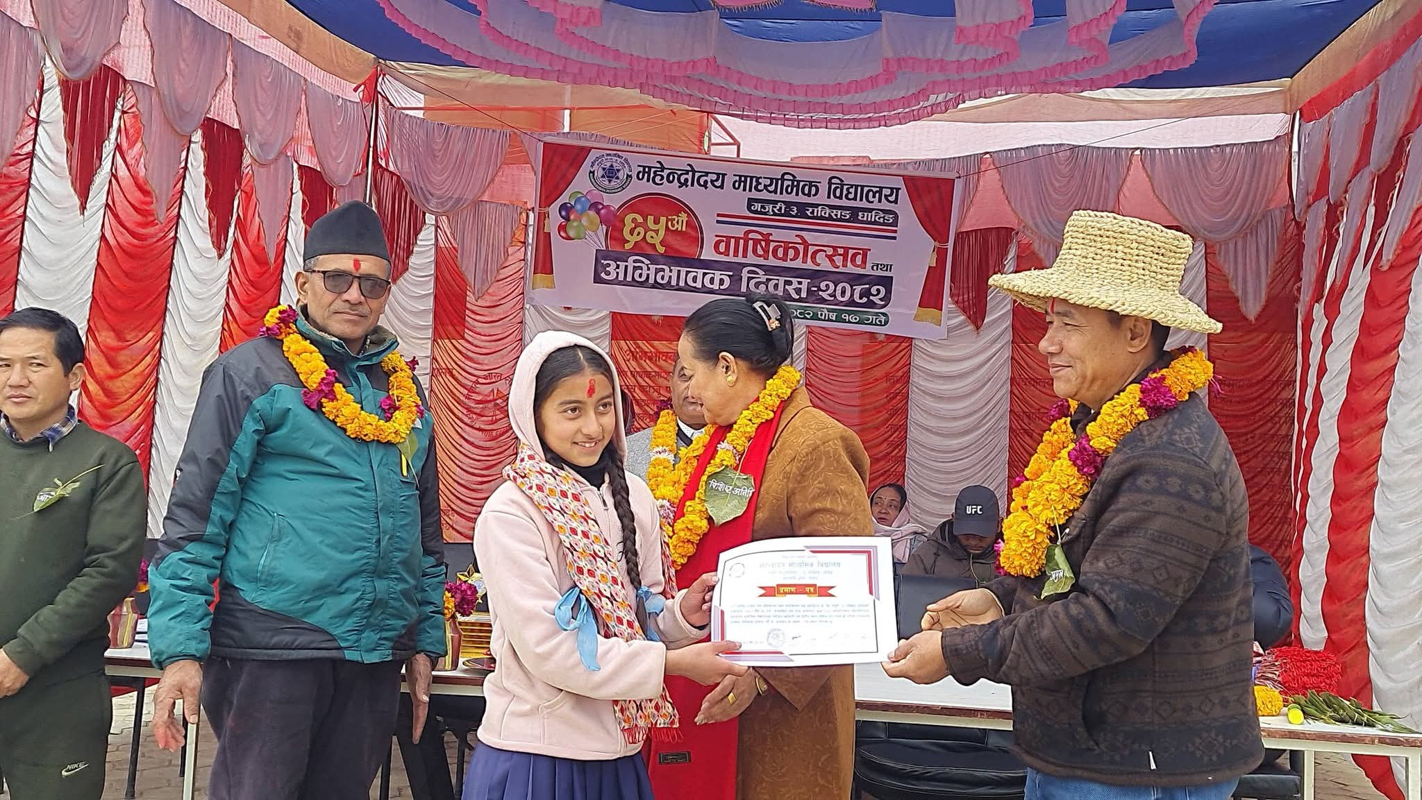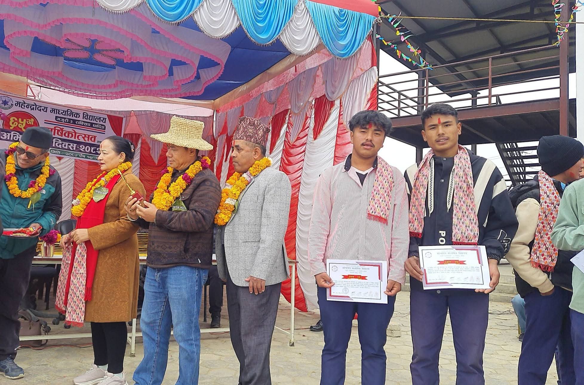 अन्तर सदन शैक्षिक सामग्री प्रदर्शनी प्रतियोगितामा पहेंलो सदन प्रथम हुन सफल भई सम्मानित भएको थियो।भौगोलिक रूपमा विकट क्षेत्रमा अवस्थित भए पनि अभिभावक,शिक्षक तथा विद्यार्थीहरूको अनुशासन, मेहनत र परिश्रमका कारण विद्यालय शैक्षिक, सांस्कृतिक तथा खेलकुद क्षेत्रमा निरन्तर प्रगतिको दिशामा अघि बढिरहेको सहभागीहरूले बताएका छन्।कार्यक्रम सञ्चालन विद्यालयका शिक्षक राम किशोर चौधरीले गर्नुभएको थियो।