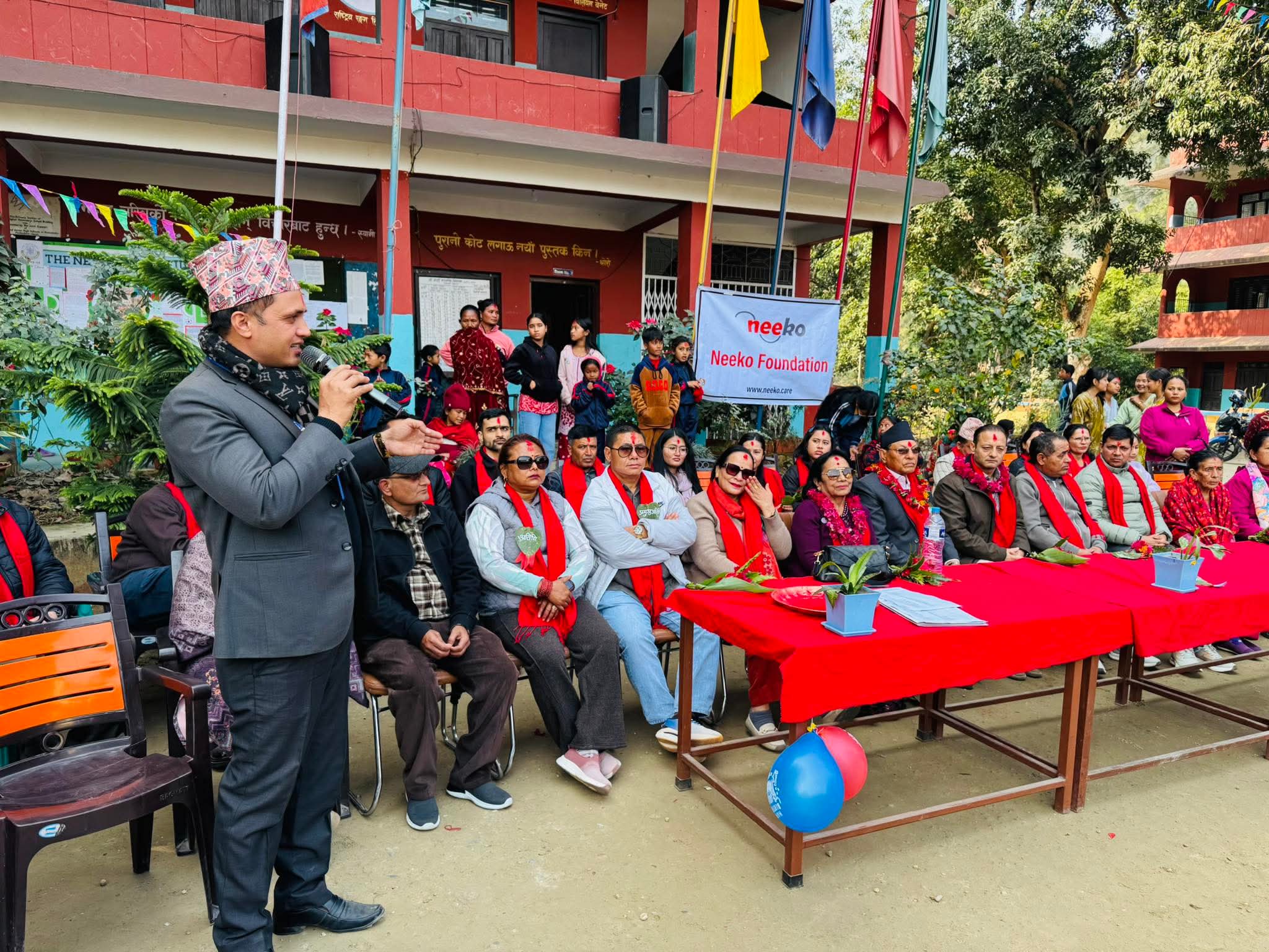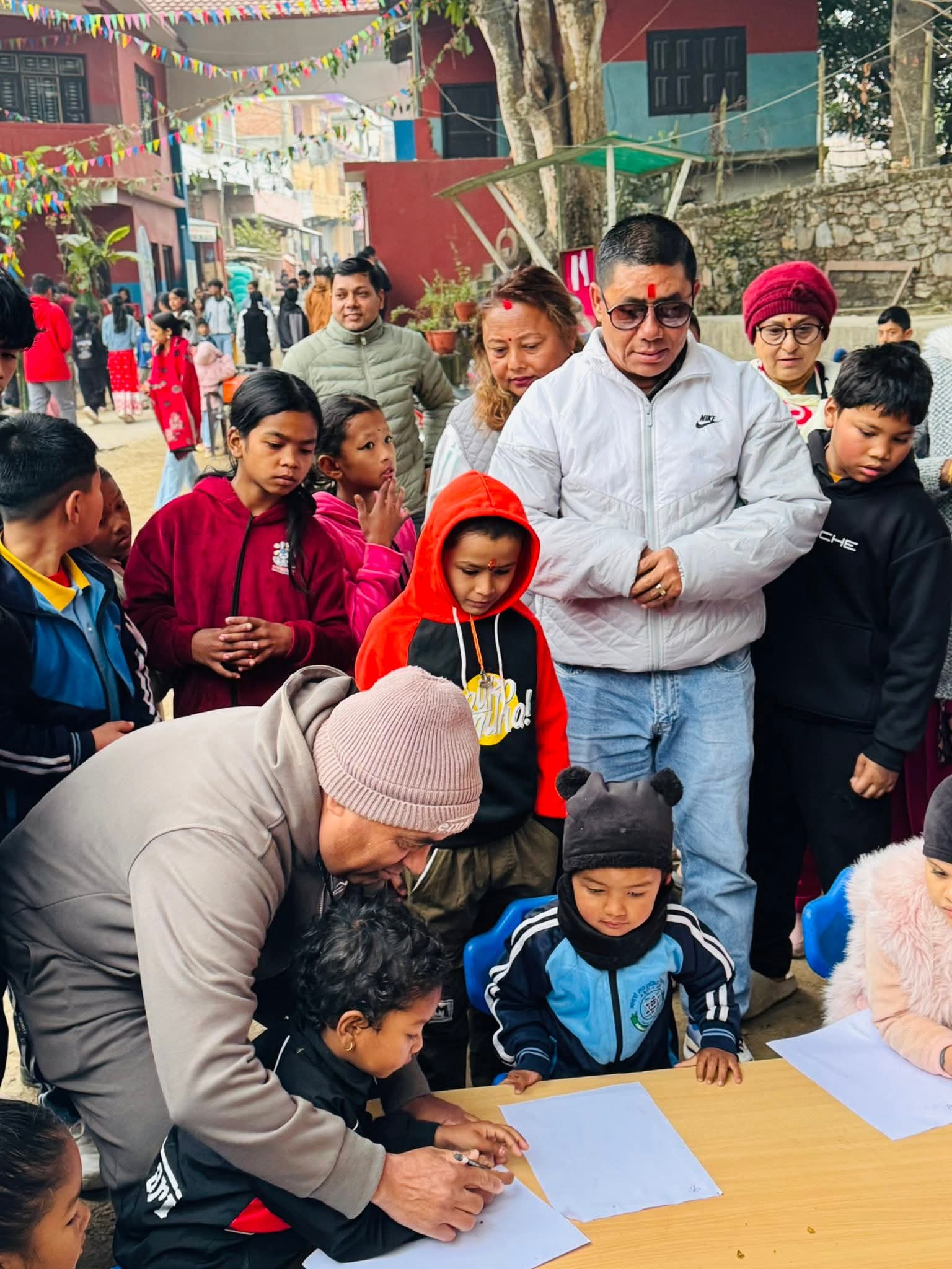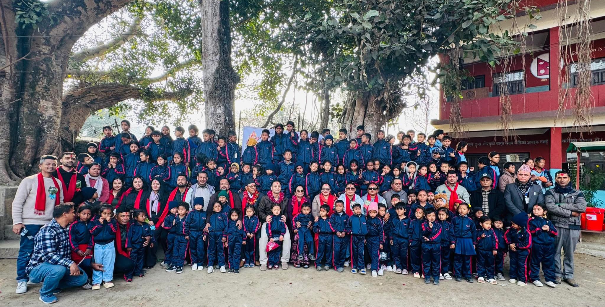कार्यक्रम कै क्रममा ललितपुर -४, बागडोल स्थायी घर भैई हाल अ्मेरिका बस्नुहुने यस विद्यालयका पूर्व विद्यार्थी,समाजसेवी तथा शिक्षाप्रेमी व्यक्तित्व श्री राजुकार्की(पिता राजेश कार्की,माता रुकु कार्की,दाजु रोशन कार्की)ले (Neeko Foundation)यस विद्यालयका २३१ जना विद्यार्थीहरूलाई न्यानो कपडा ट्र्याकसुट वितरण गर्नुभयो ।
