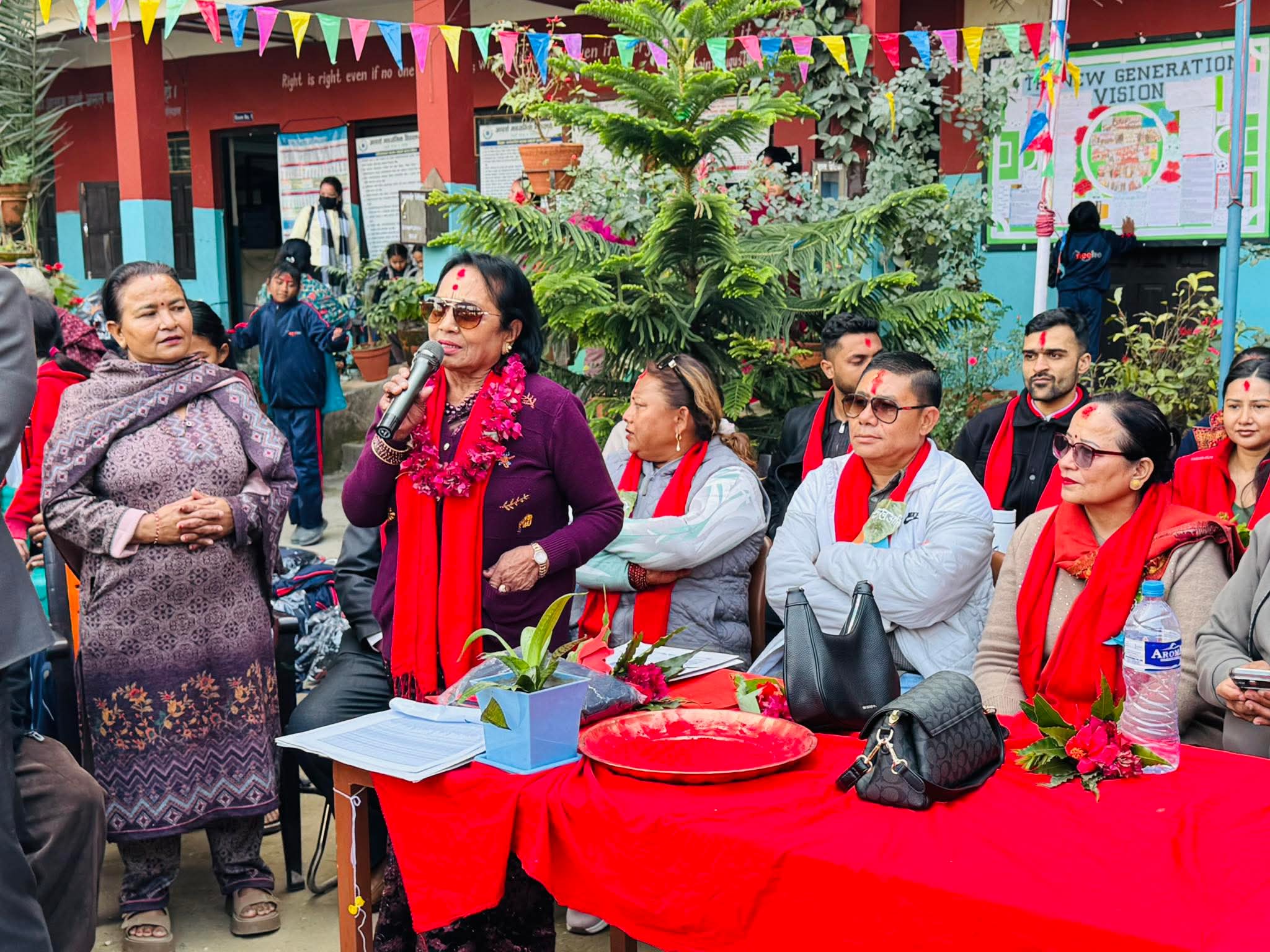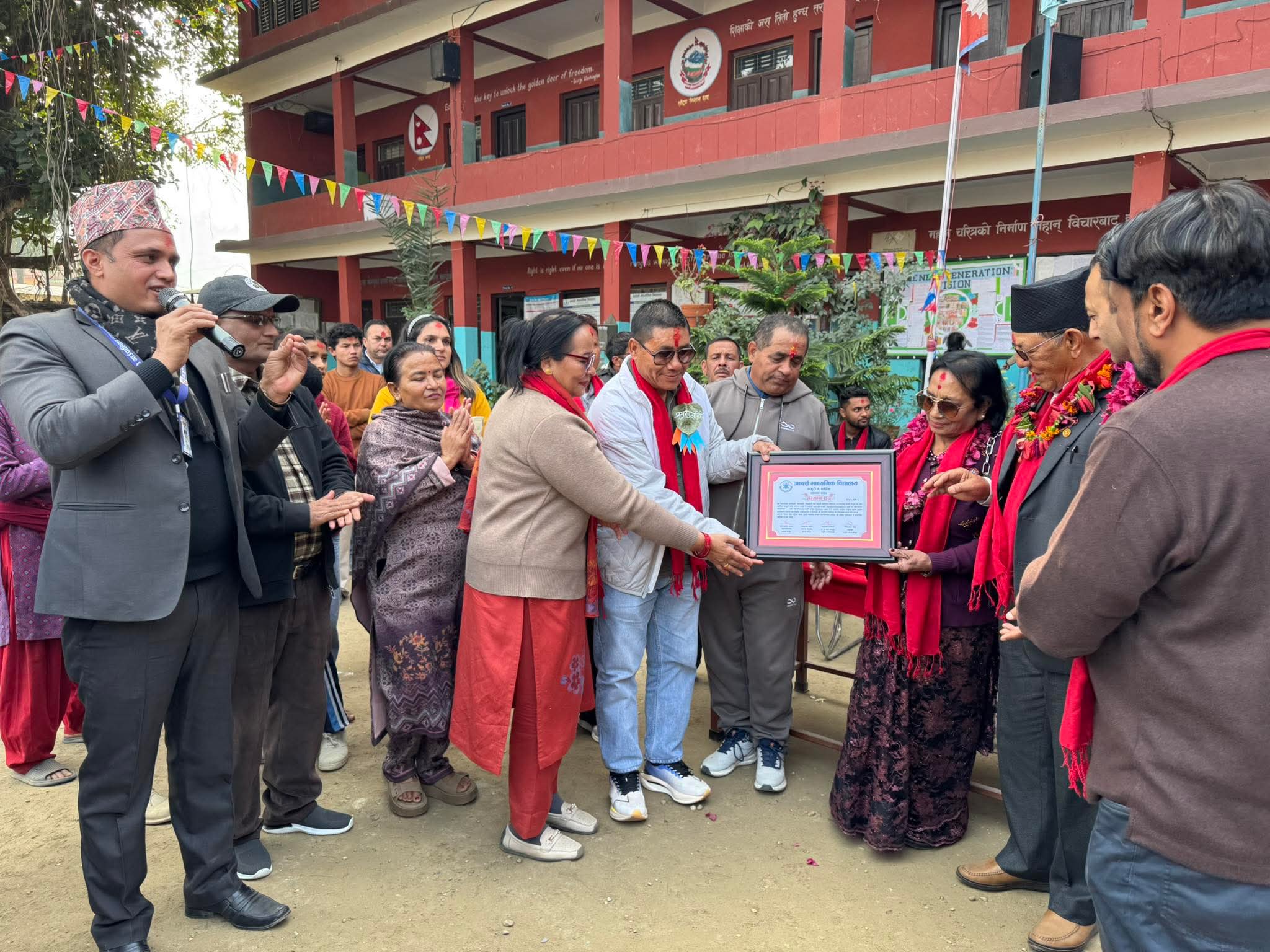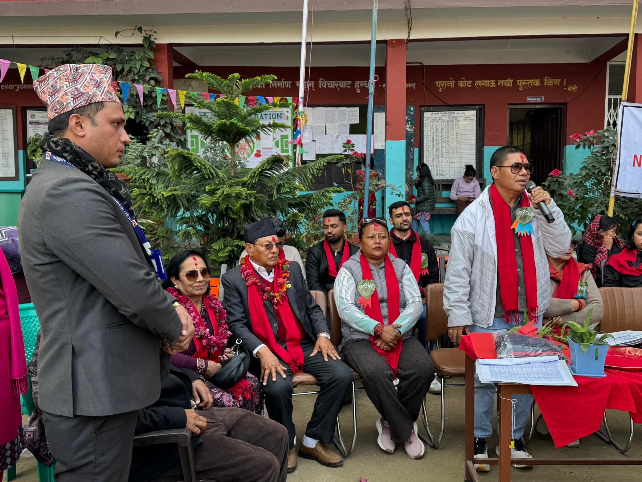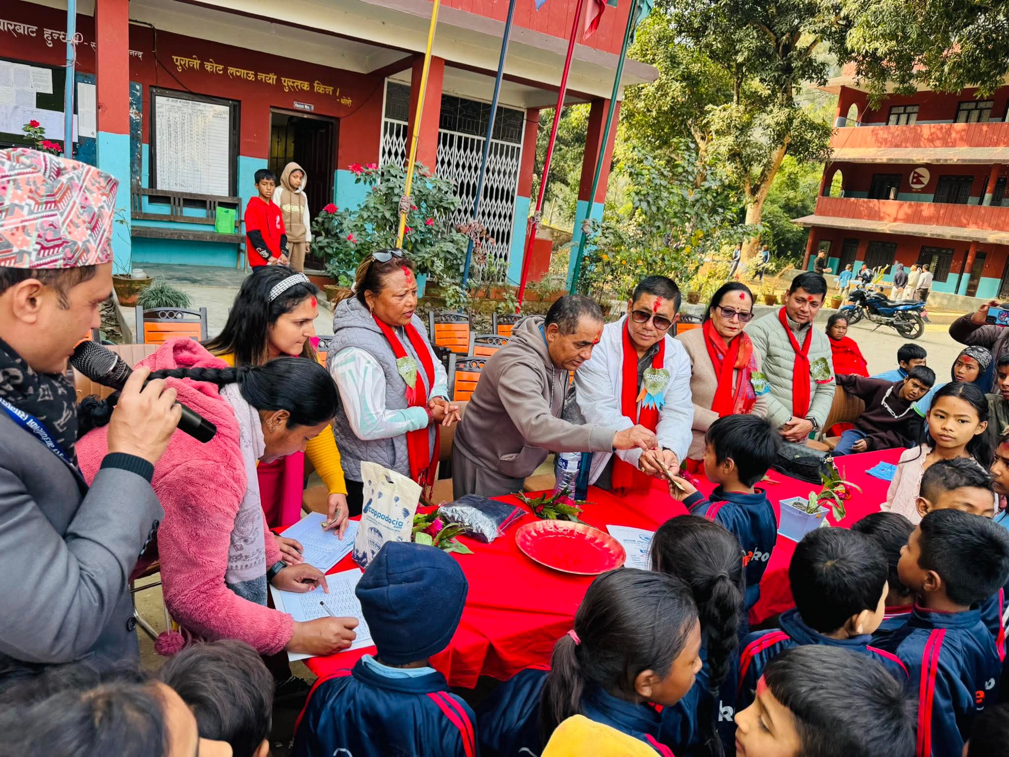 कार्यक्रम कै क्रममा ललितपुर -४, बागडोल स्थायी घर भैई हाल अ्मेरिका बस्नुहुने यस विद्यालयका पूर्व विद्यार्थी,समाजसेवी तथा शिक्षाप्रेमी व्यक्तित्व श्री राजुकार्की(पिता राजेश कार्की,माता रुकु कार्की,दाजु रोशन कार्की)ले (Neeko Foundation)यस विद्यालयका २३१ जना विद्यार्थीहरूलाई न्यानो कपडा ट्र्याकसुट वितरण गर्नुभयो ।