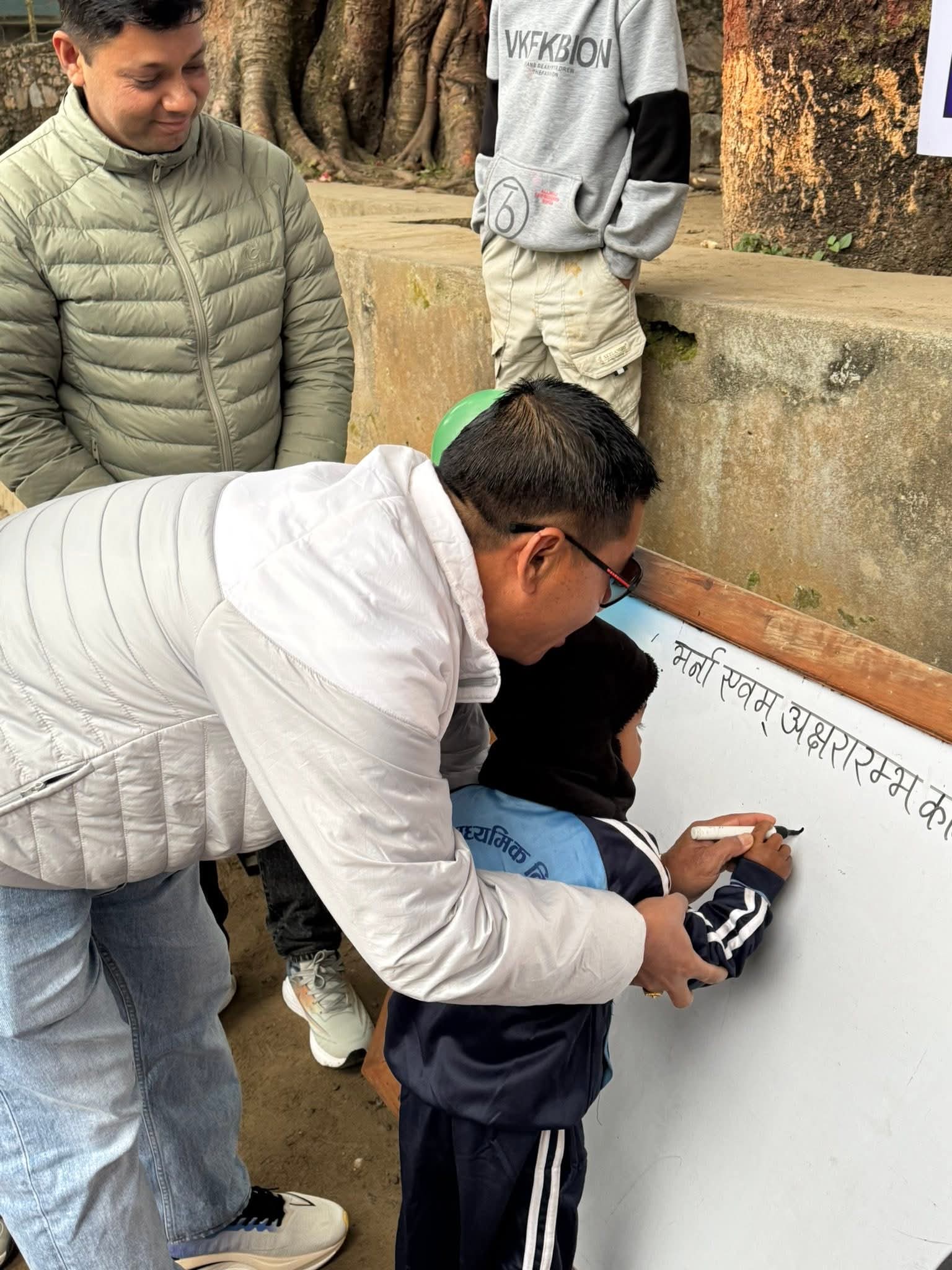 पालिका प्रमुख,उप प्रमुख,वडा अध्यक्ष र शिक्षा शाखा प्रमुखले नयाँ भर्ना भएका बालबालिकाहरूको हात समाई अक्षरारम्भ गराएका थिए।
