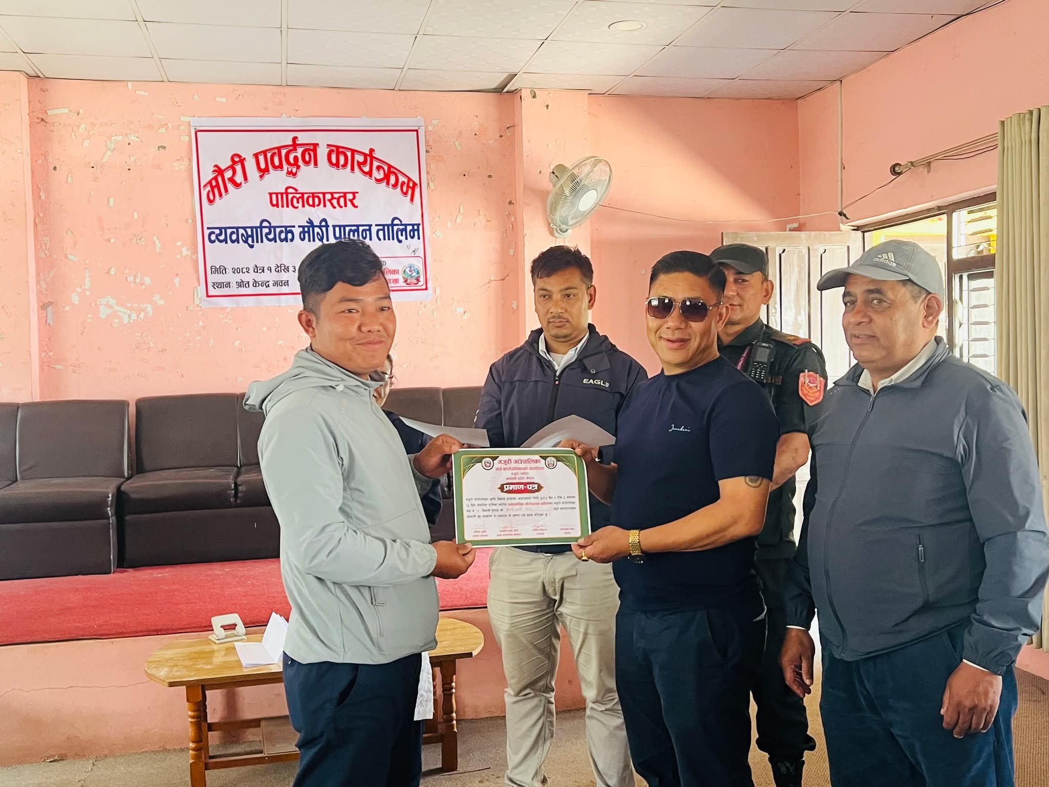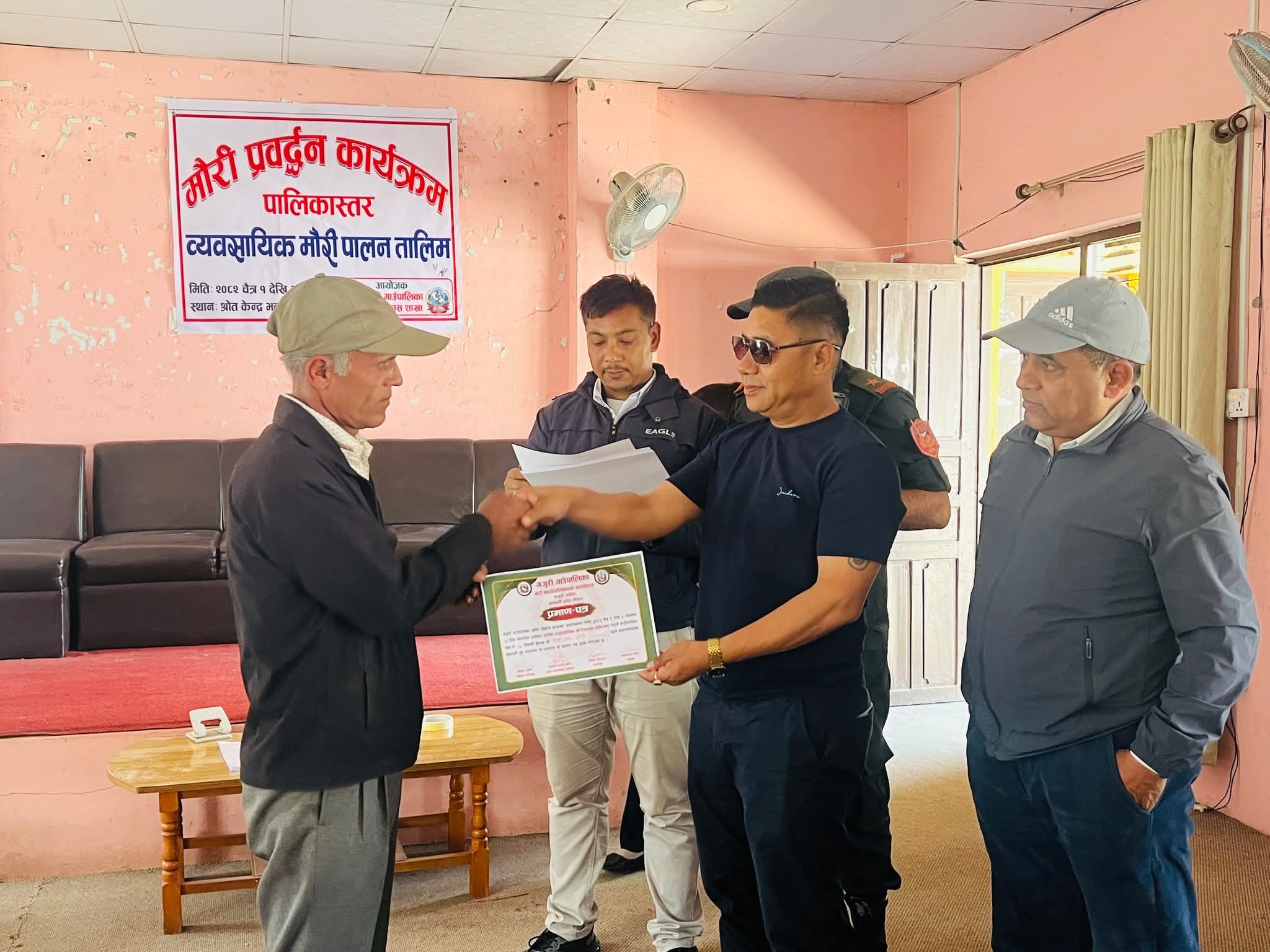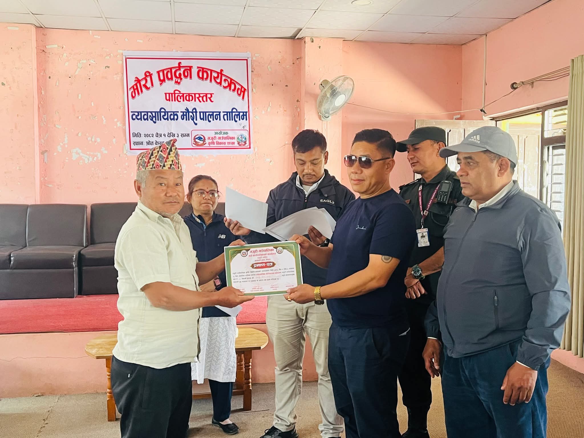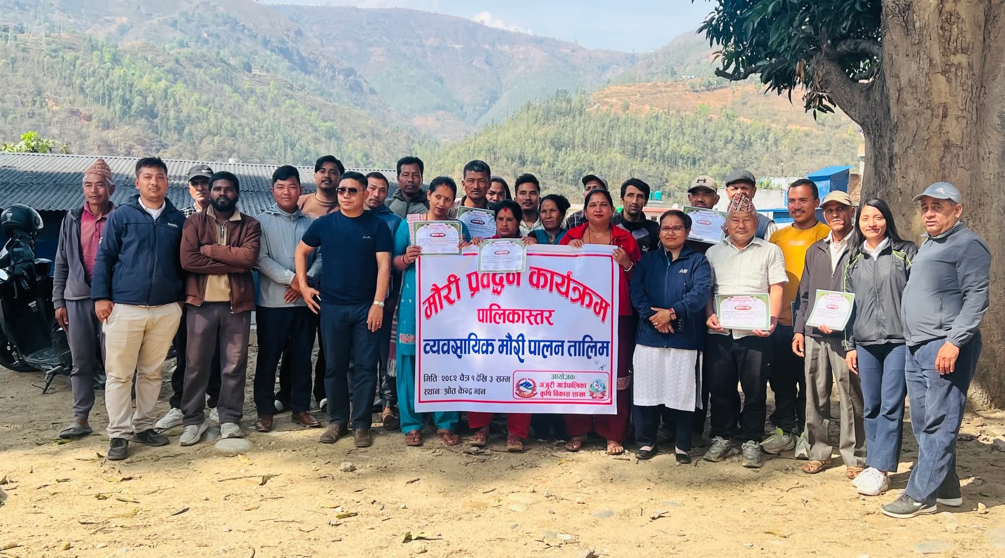 धादिङ — गजुरी गाउँपालिकामा कृषि शाखाको आयोजनामा चैत्र १ गते देखि ३ गतेसम्म सञ्चालन भएको व्यावसायिक मौरीपालन तालिम सफलता पूर्वक सम्पन्न भएको छ। कृषकहरूलाई आधुनिक सीप,प्रविधि तथा ज्ञान प्रदान गरी मौरीपालनलाई लाभदायक र दिगो व्यवसायका रूपमा विकास गर्ने उद्देश्यले तालिम आयोजना गरिएको हो।