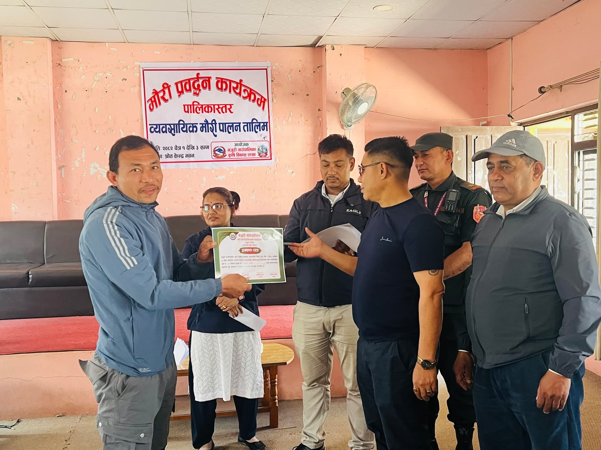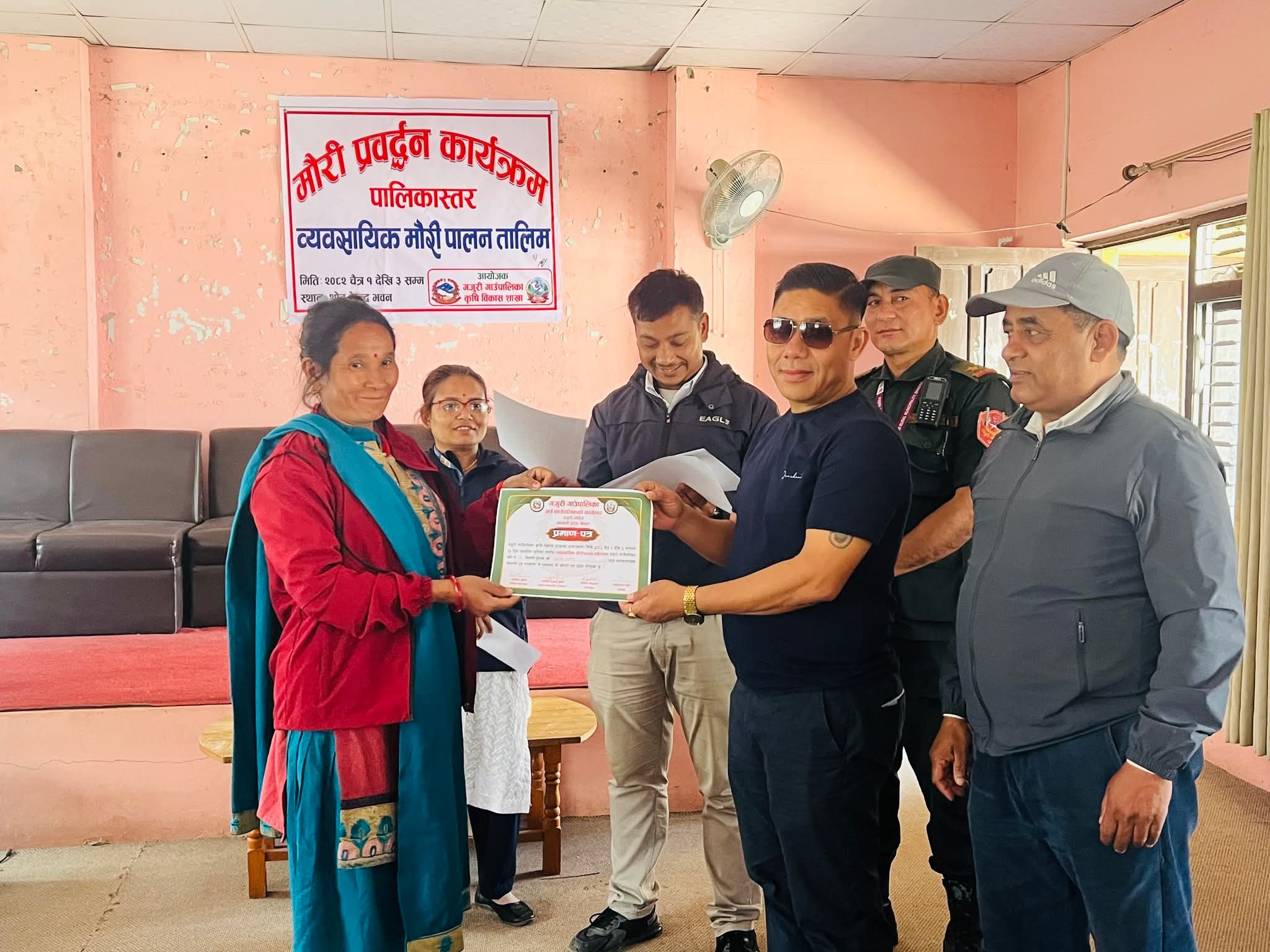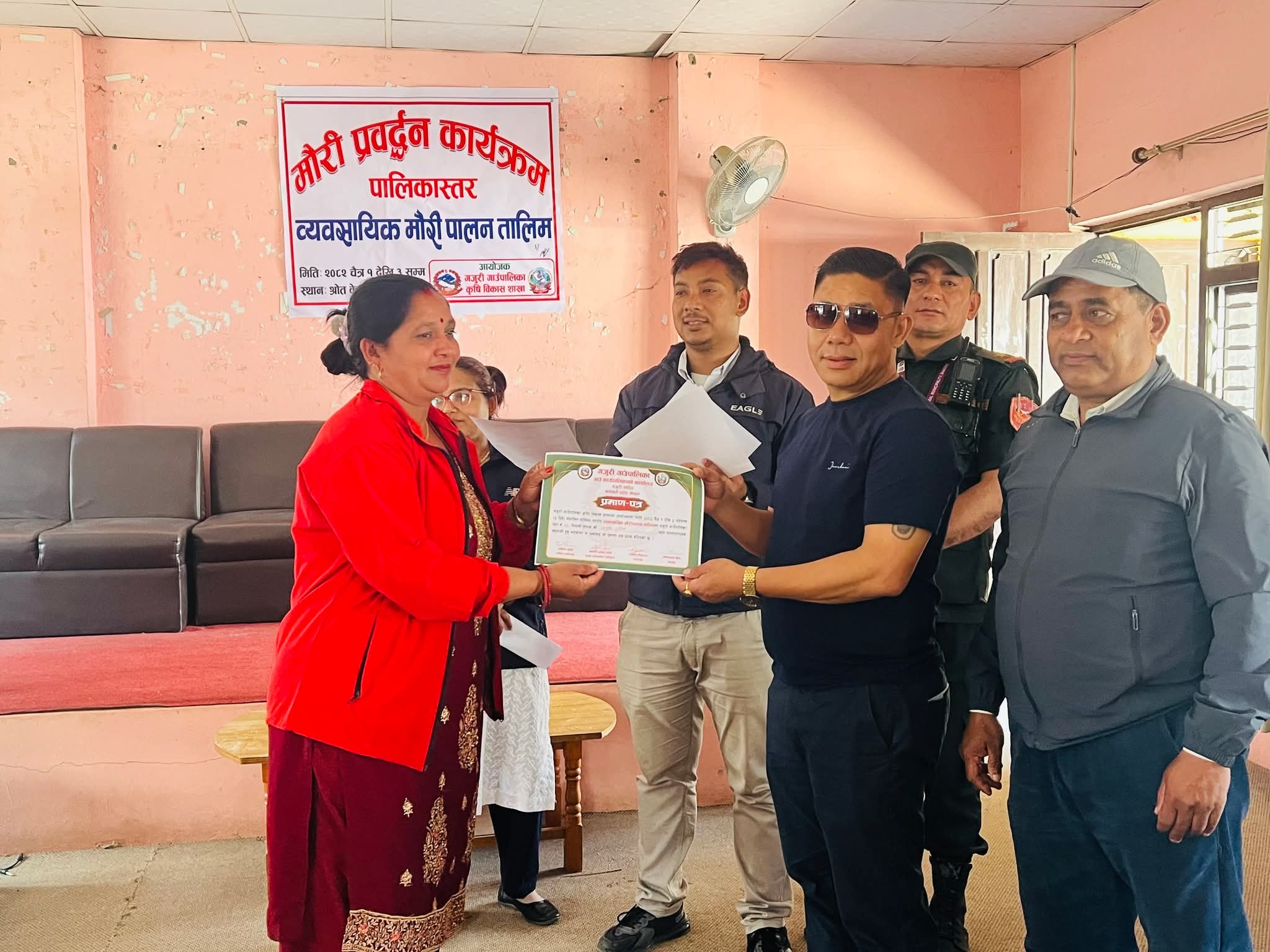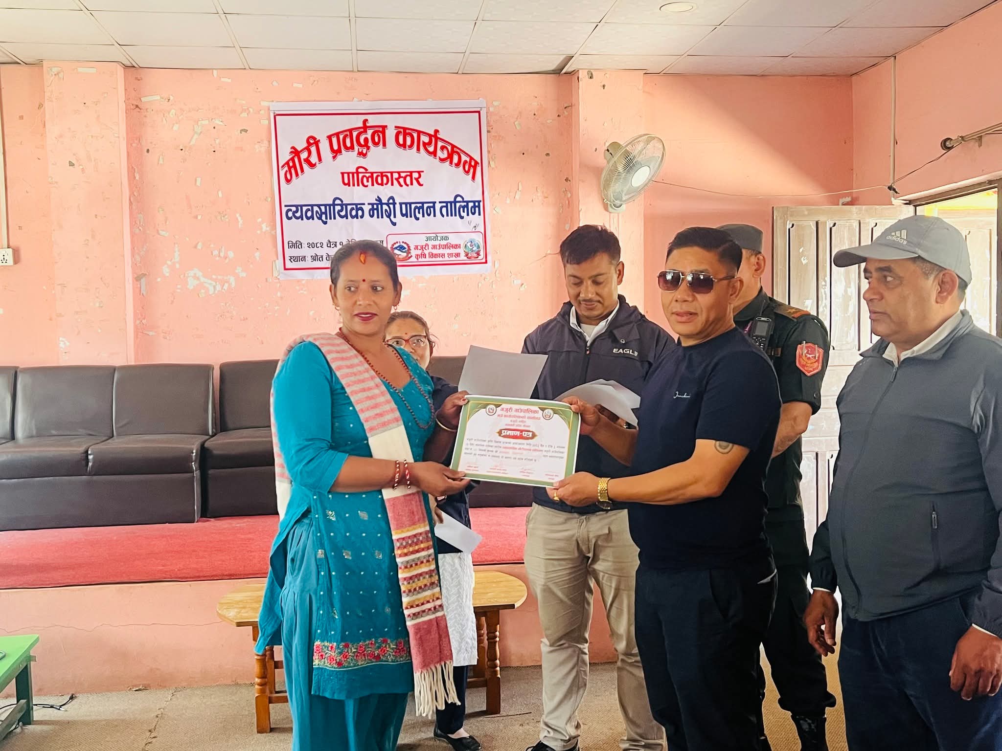 धादिङ — गजुरी गाउँपालिकामा कृषि शाखाको आयोजनामा चैत्र १ गते देखि ३ गतेसम्म सञ्चालन भएको व्यावसायिक मौरीपालन तालिम सफलता पूर्वक सम्पन्न भएको छ। कृषकहरूलाई आधुनिक सीप,प्रविधि तथा ज्ञान प्रदान गरी मौरीपालनलाई लाभदायक र दिगो व्यवसायका रूपमा विकास गर्ने उद्देश्यले तालिम आयोजना गरिएको हो।
