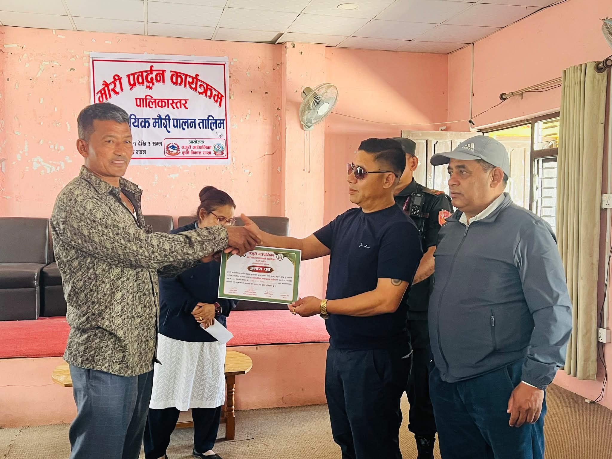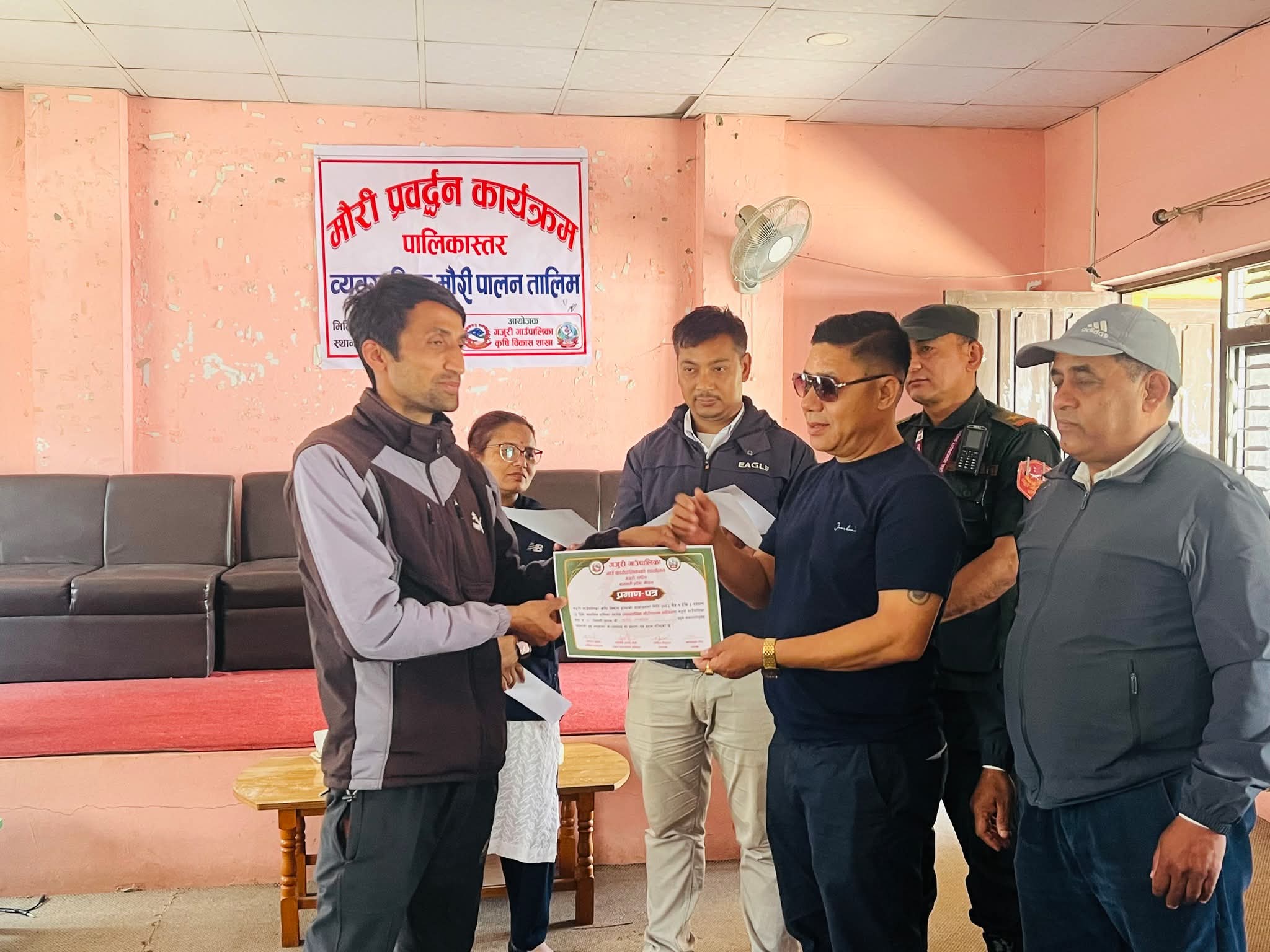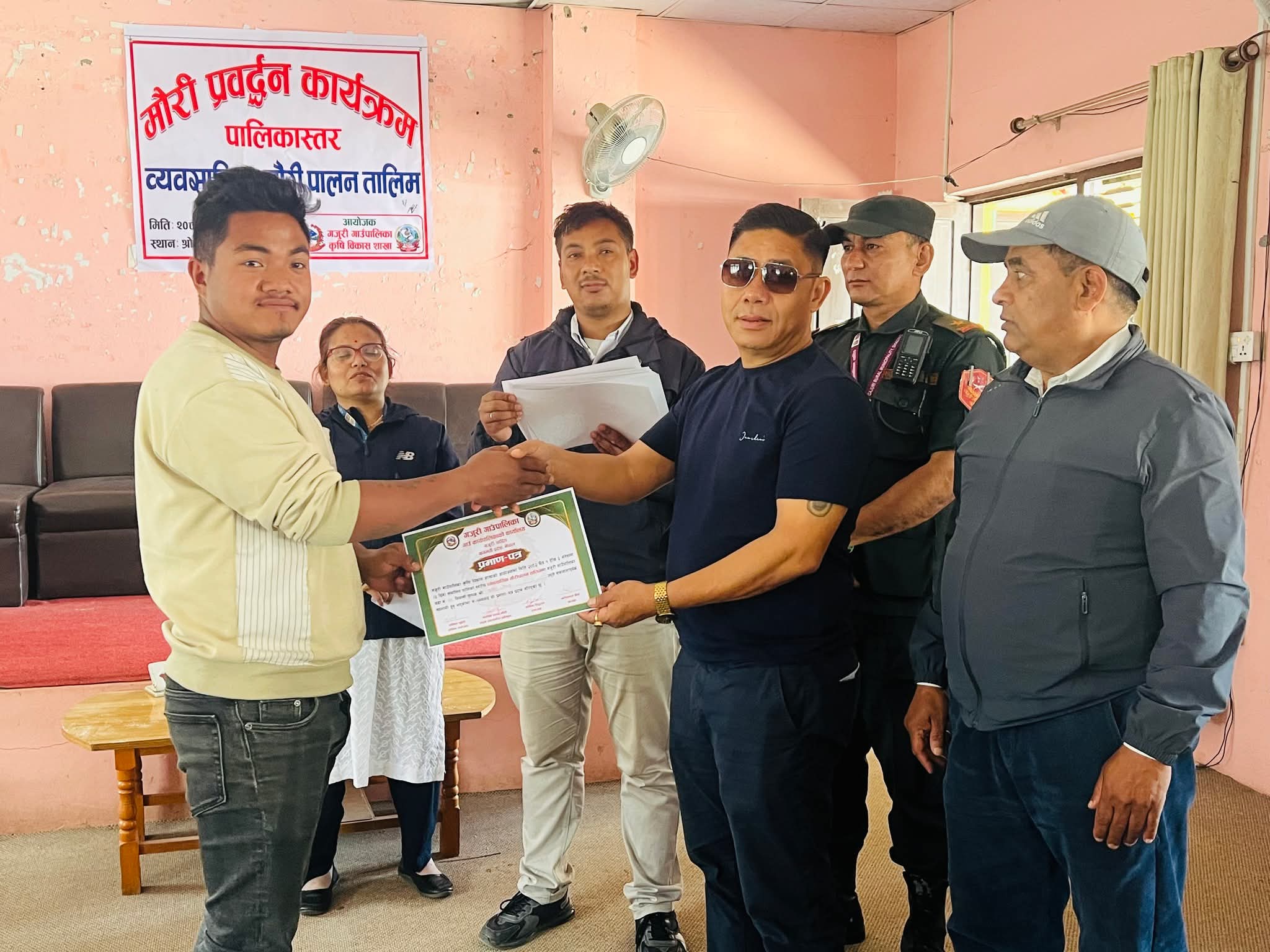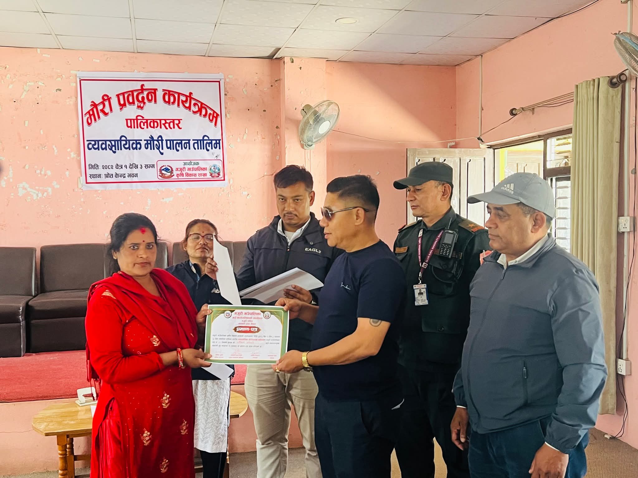 धादिङ — गजुरी गाउँपालिकामा कृषि शाखाको आयोजनामा चैत्र १ गते देखि ३ गतेसम्म सञ्चालन भएको व्यावसायिक मौरीपालन तालिम सफलता पूर्वक सम्पन्न भएको छ। कृषकहरूलाई आधुनिक सीप,प्रविधि तथा ज्ञान प्रदान गरी मौरीपालनलाई लाभदायक र दिगो व्यवसायका रूपमा विकास गर्ने उद्देश्यले तालिम आयोजना गरिएको हो।
