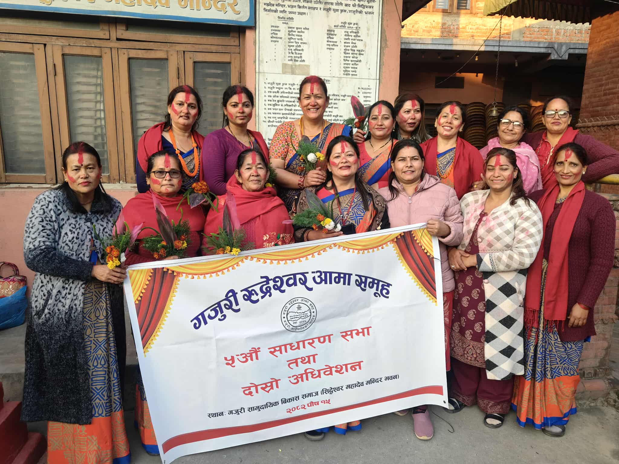 गजुरी । गजुरी रुद्देश्वर आमा समूहको ५ औँ साधारणसभा तथा दोस्रो अधिवेशन सम्पन्न भएको छ।कार्यक्रम आमा समूहका अध्यक्ष सीता श्रेष्ठको अध्यक्षतामा सम्पन्न भएको हो।
